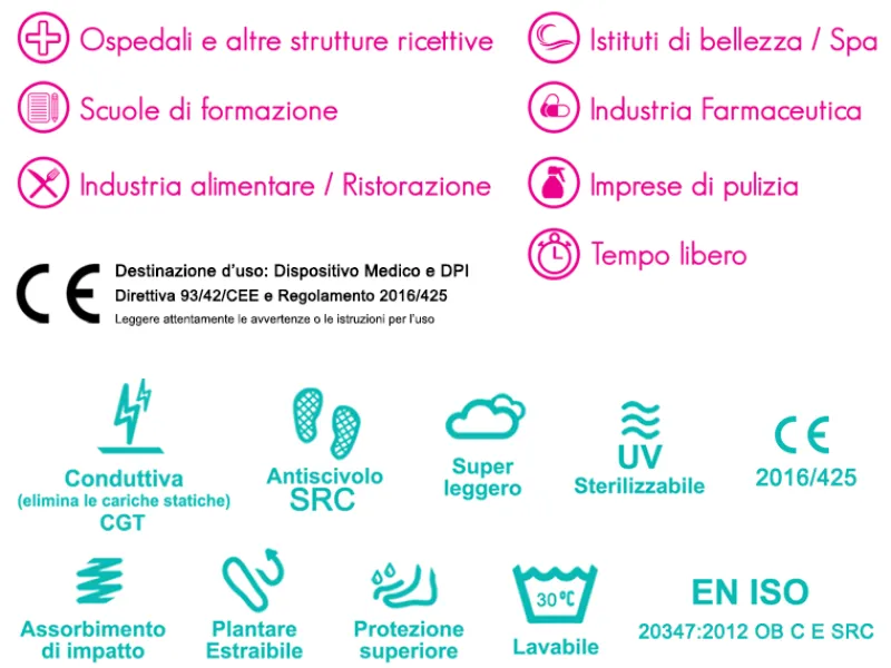 Ospedali, Farmacie, Industria alimentare, Ristorazione, Istituti di bellezza, Spa, Parrucchiere, Centri estetici, Scuole di formazione, Imprese di pulizia, Tempo libero.